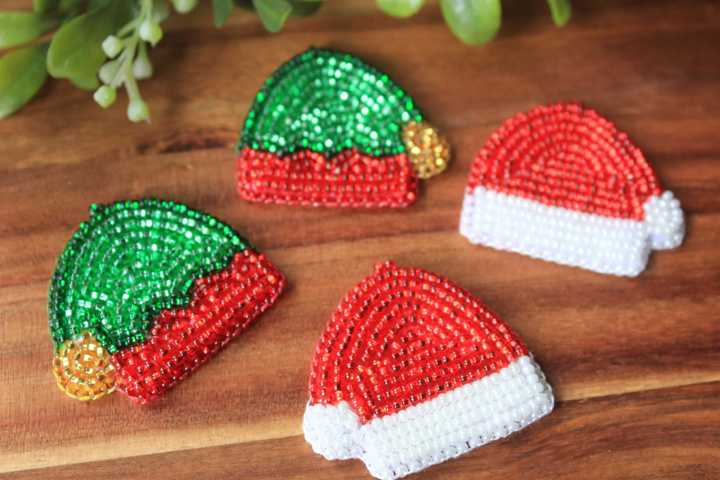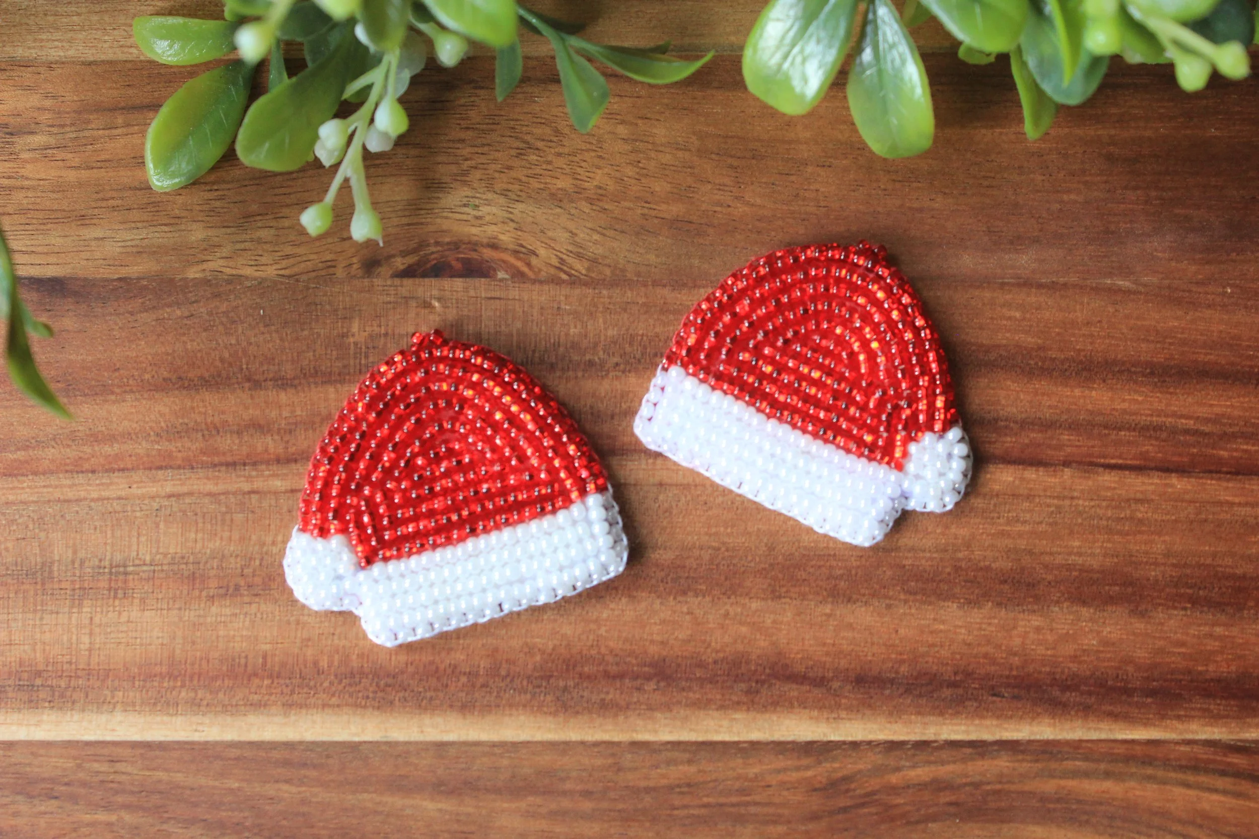 Shop › Santa Hat Earrings Santa Hat Earrings $90.00 Beaded with size 10/0 Czech seed beads with stainless steel kidney hooks Beaded with size 10/0 Czech seed beads with stainless steel kidney hooks Add To Cart Added!