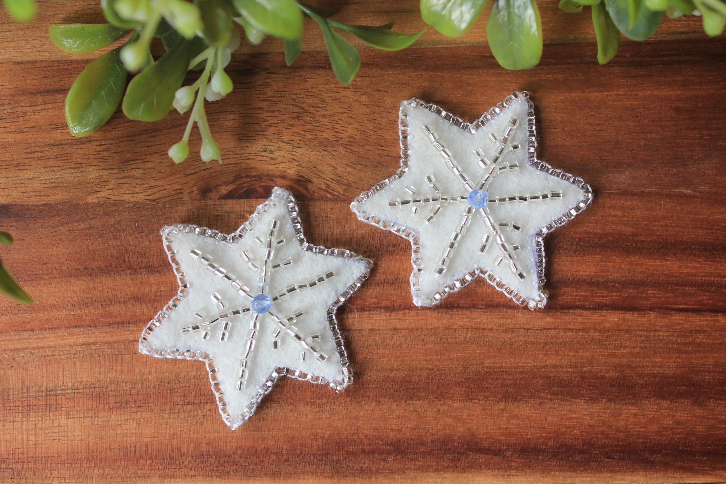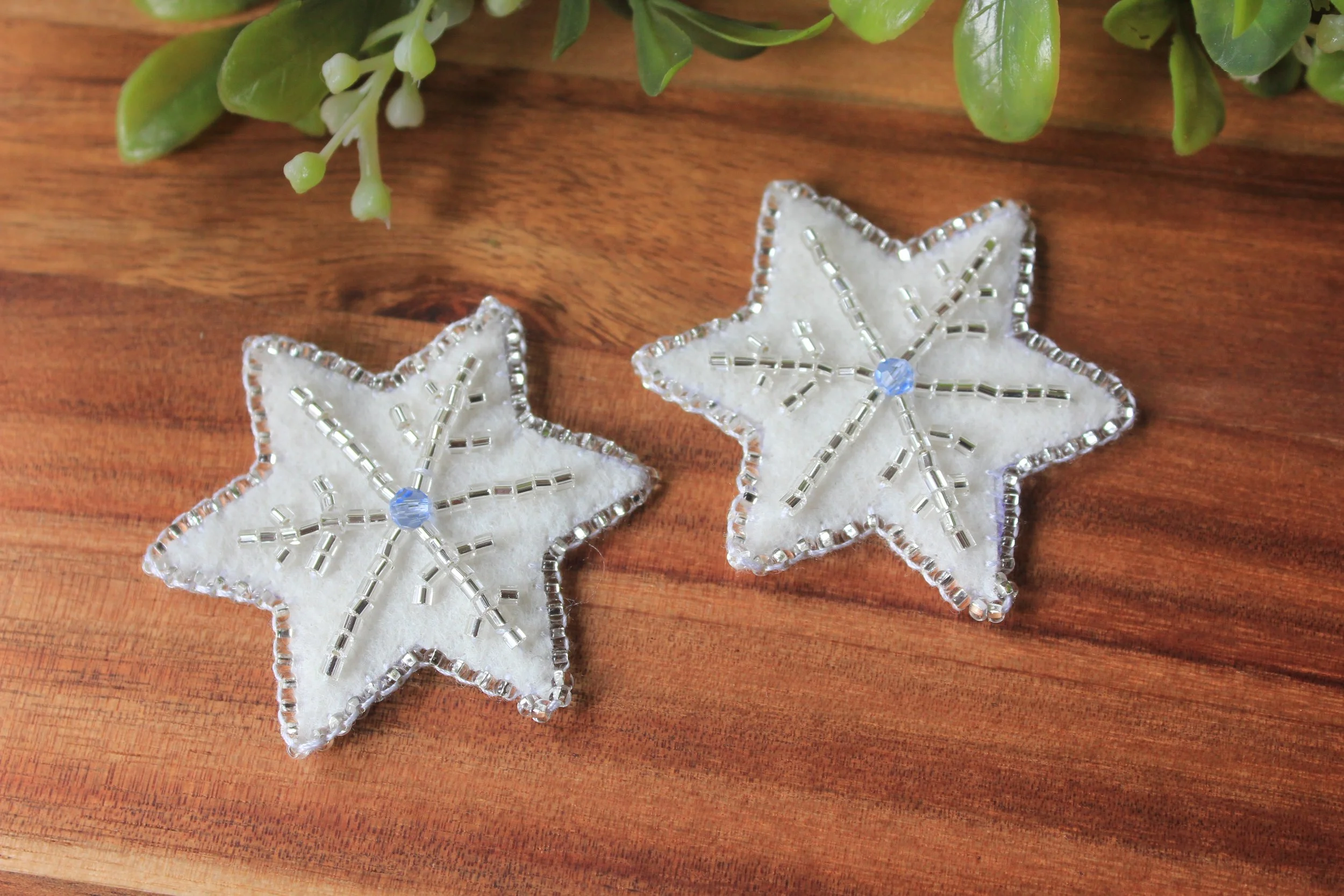 Shop › White Snowflake Earrings White Snowflake Earrings $75.00 Beaded size 10/0 Czech seed beads, 2 cut beads , crystal beads with sterling silver fish hooks Beaded size 10/0 Czech seed beads, 2 cut beads , crystal beads with sterling silver fish hooks Add To Cart Added!