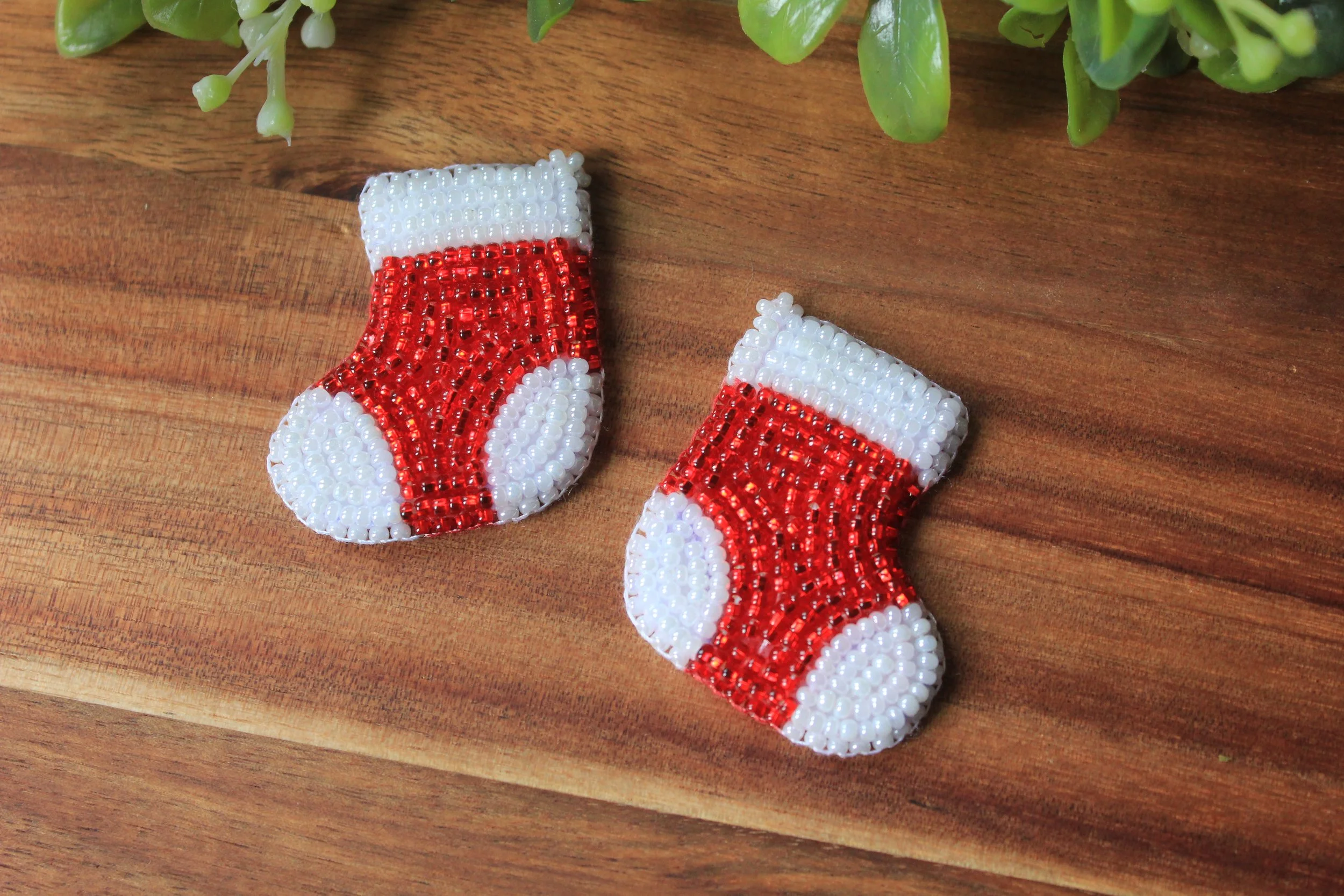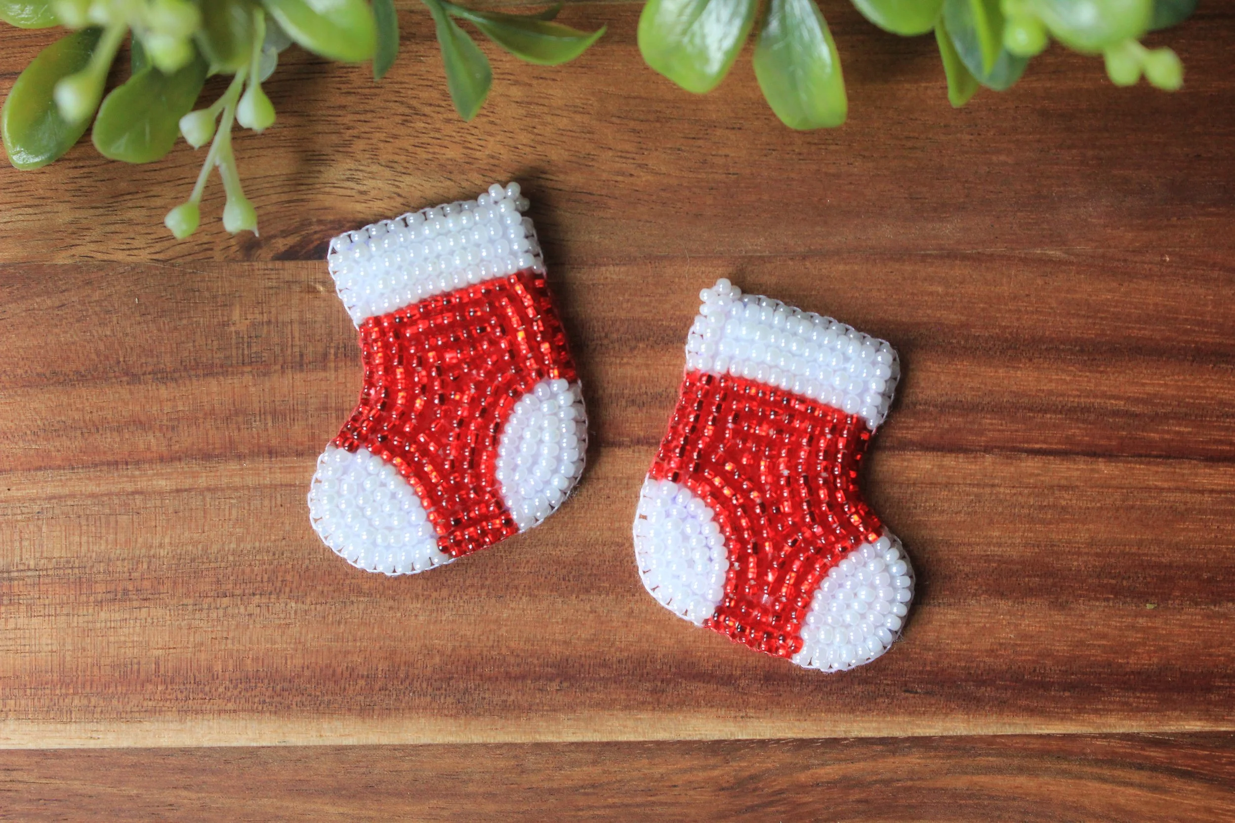 Shop › Santa Stocking Earrings Santa Stocking Earrings $90.00 Beaded with size 10/0 Czech seed beads with stainless steel kidney hooks Beaded with size 10/0 Czech seed beads with stainless steel kidney hooks Add To Cart Added!