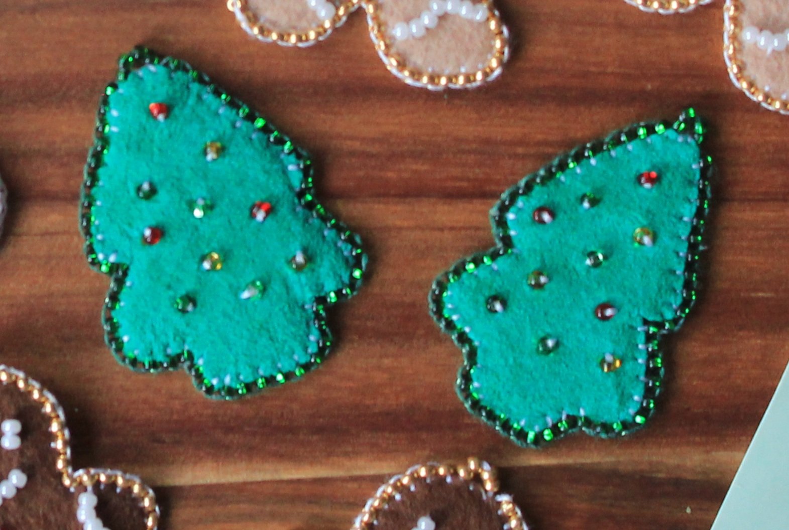 Shop › Vintage Christmas Tree Earrings Vintage Christmas Tree Earrings $80.00 Beaded with size 10/0 Czech seed beads on green dyed hide with sterling silver fish hooks Beaded with size 10/0 Czech seed beads on green dyed hide with sterling silver fish hooks Add To Cart Added!